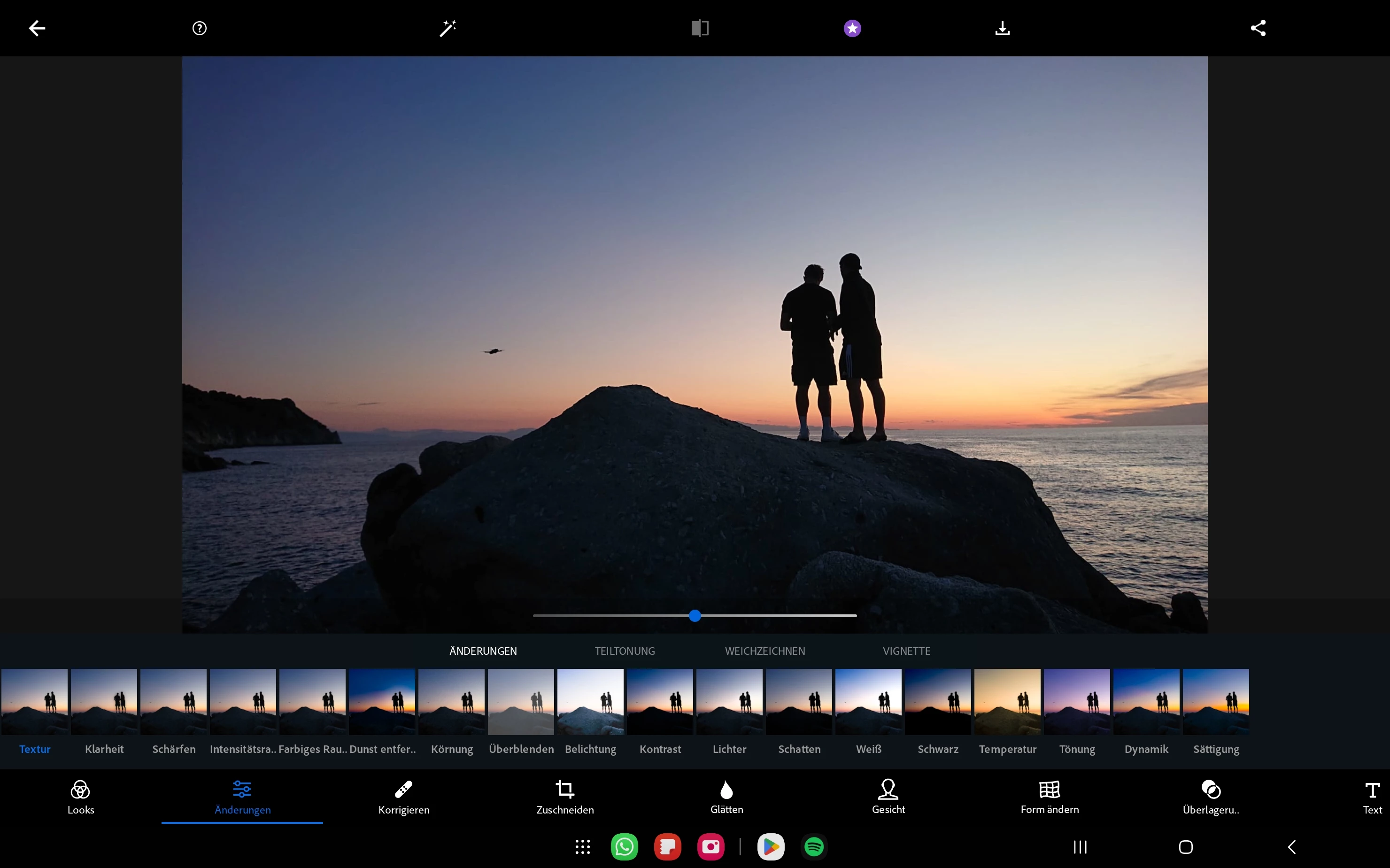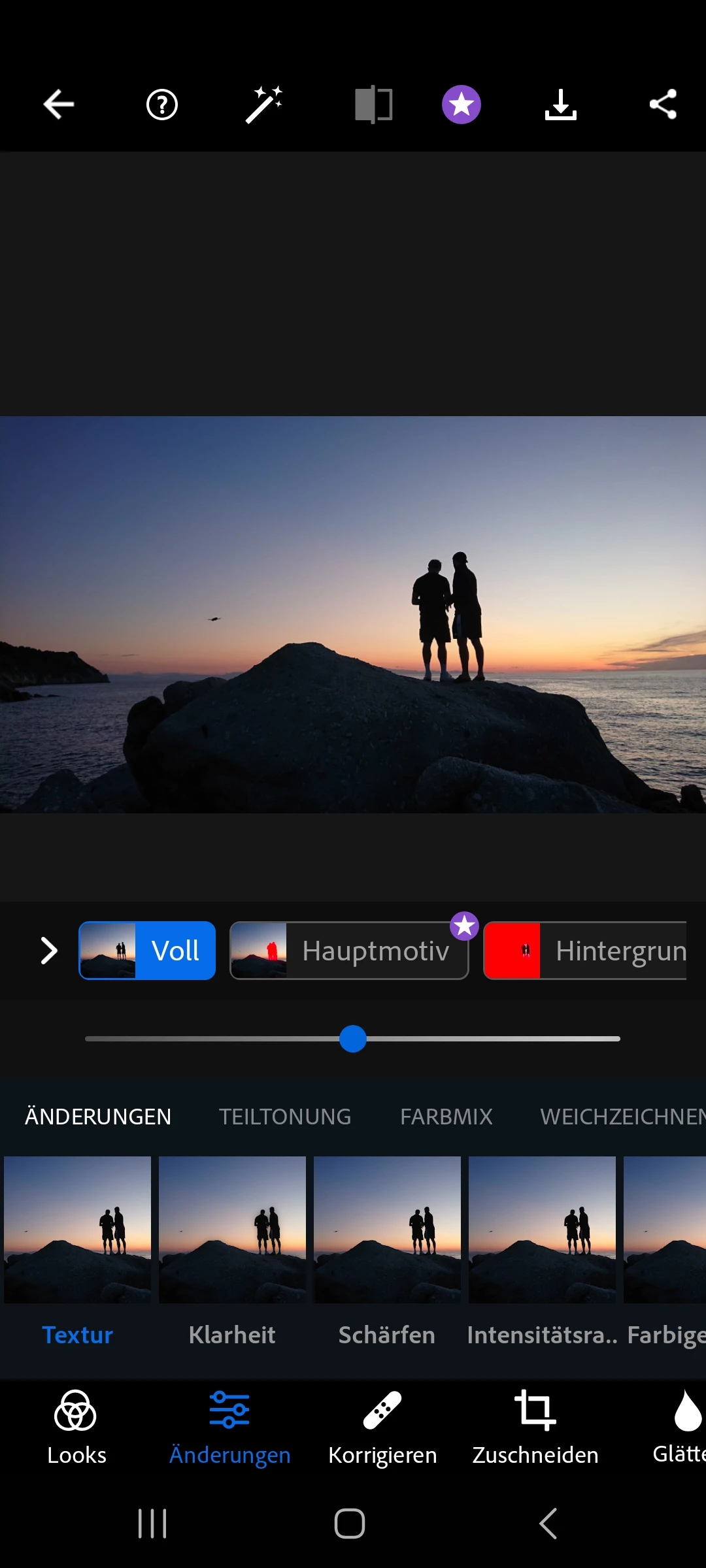 Auf meinem Handy gibt es die Option nur den Hintergrund oder nur den Vordergrund zu bearbeiten. Diese Funktion gibt es auf meinem Samsung Tab 9 nicht.
