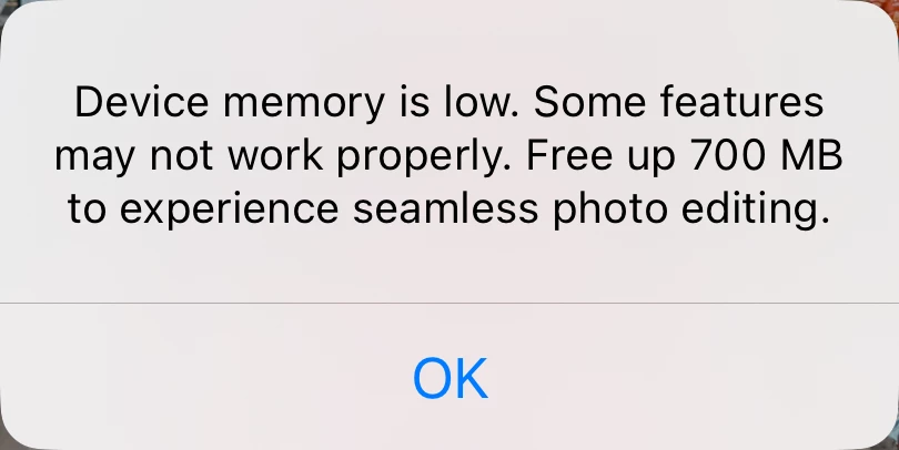 My Photoshop express application has become nearly unusable due to 'low memory' issues like the below.