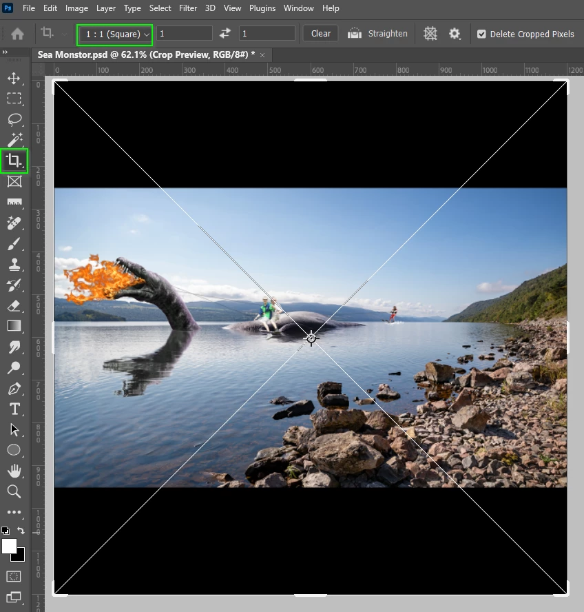 How can I change the aspect ratio from long vertical to portrait without cropping the top and bottom off but rather by adding borders to the sides?