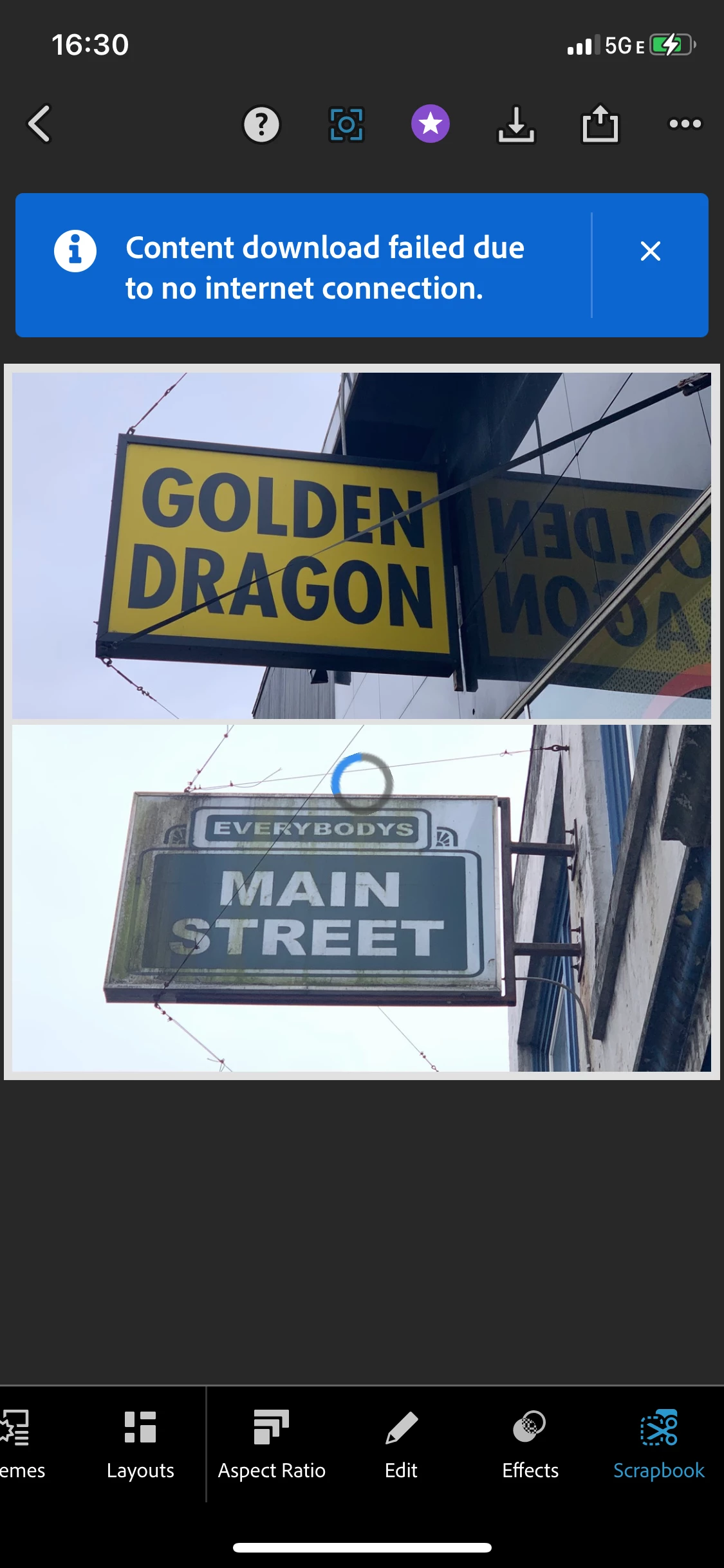 Subject: No Internet Connection Error on Scrapbook For Collage Feature