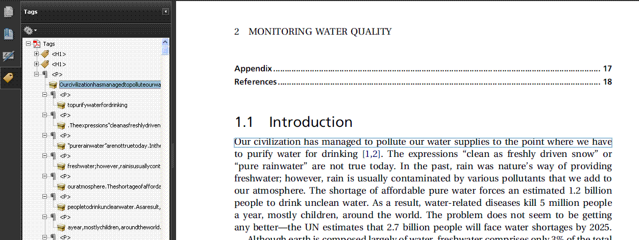 After pdf creation i found that the text is appearing without spacing in the Acrobat PDF tagged panel.