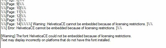 Helvetica CE font not embedded
