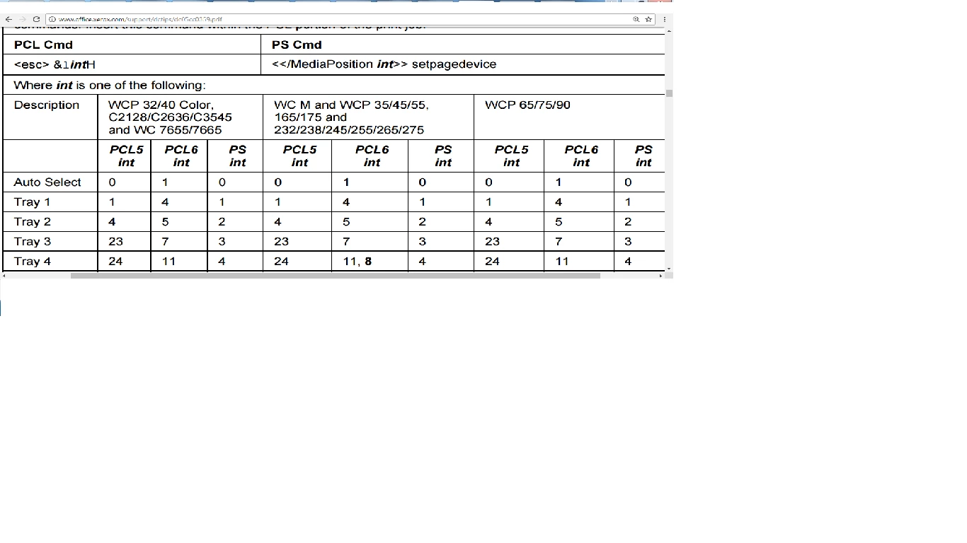 Could you please validate if following PS code which has been sent to printer is correct to take input from tray-2.