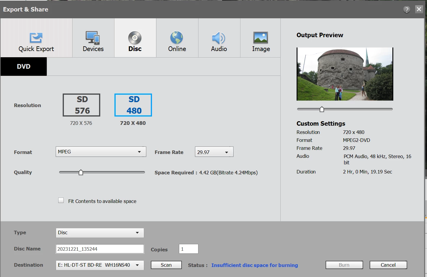 2019 Adobe Premier Elements missing DVD HD options