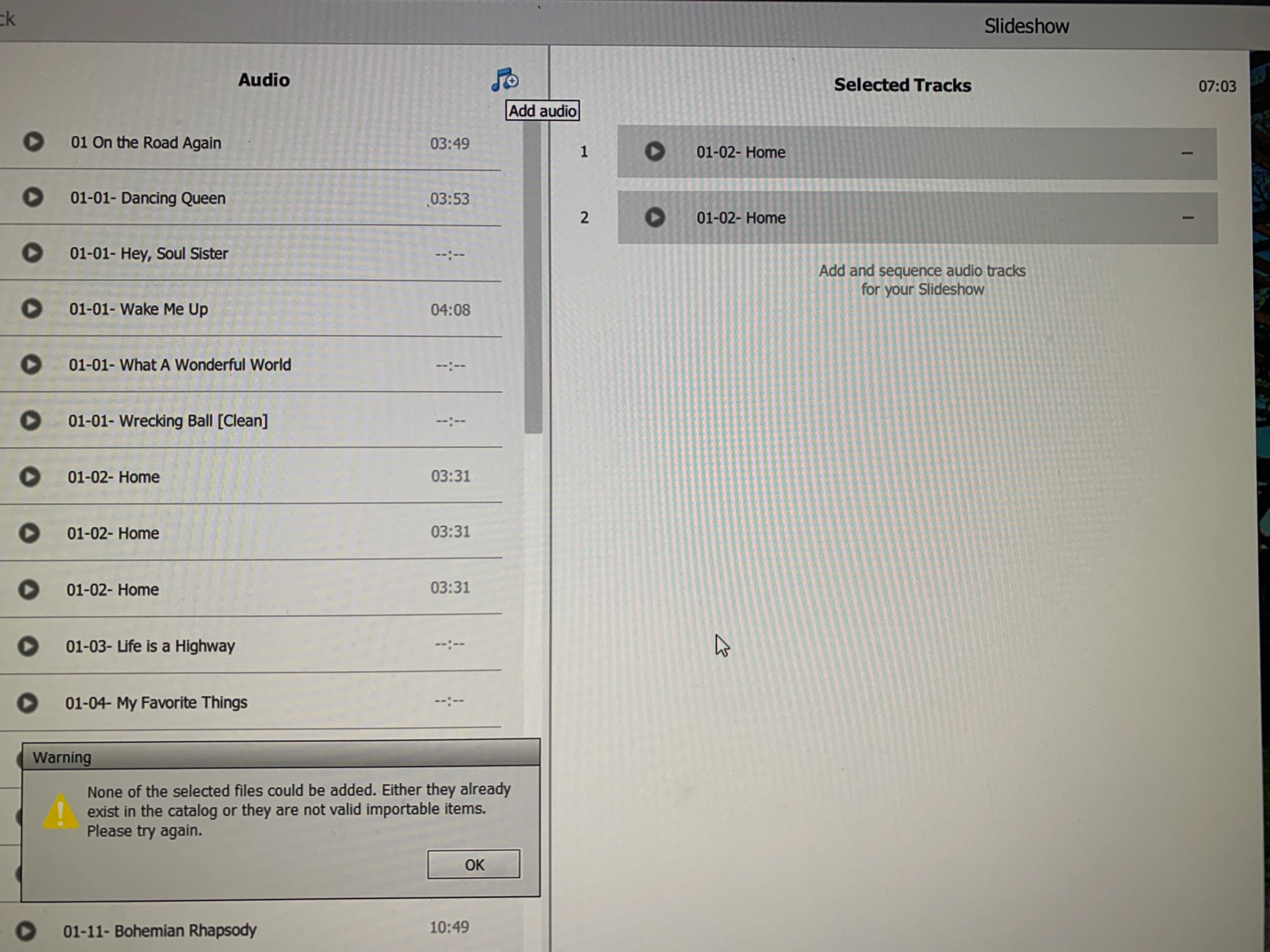 See screenshot attached. Music files corrupted in oranizer but are not when I use editor. Also, so time when saving or exporting a slideshow, phantom music is added.