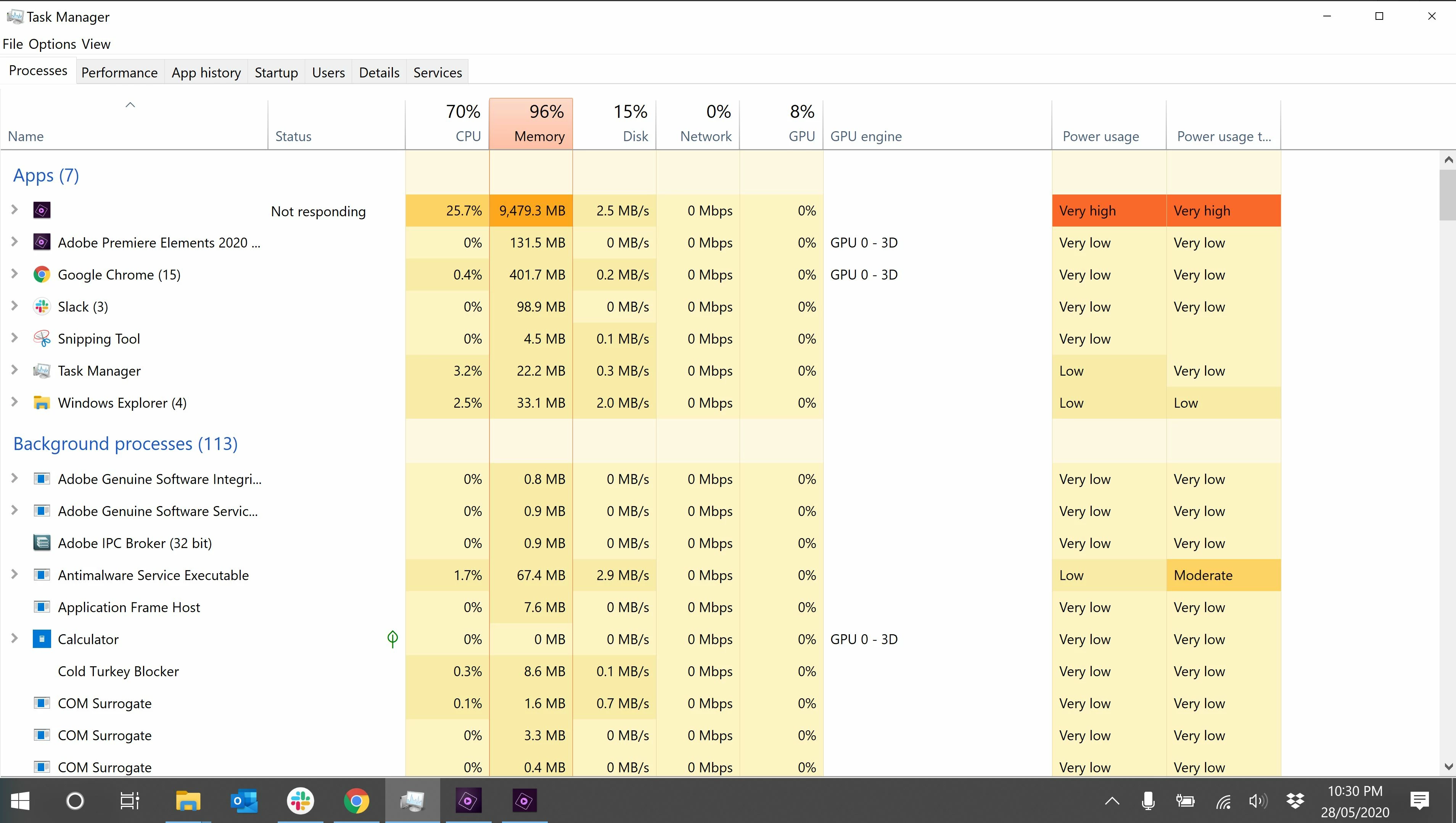 I've attached a video of this happening and a screenshot of my task manager a minute after this.