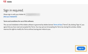 j'ai un message d'erreur comme sur la capture d'écran suivante alors que je suis bien authentifier avec mes credentials adobe ID et mdp.
