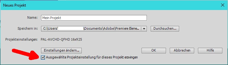Adobe Premier Elements 2019 - How to setup, that Projects start always in PAL -> QFHD (UHD) 16x9 25?