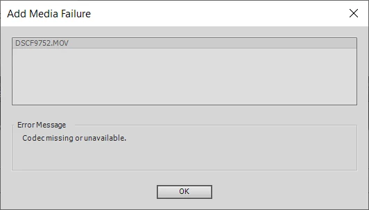 Adobe premiere element 2018 - codec is missing or unavailable