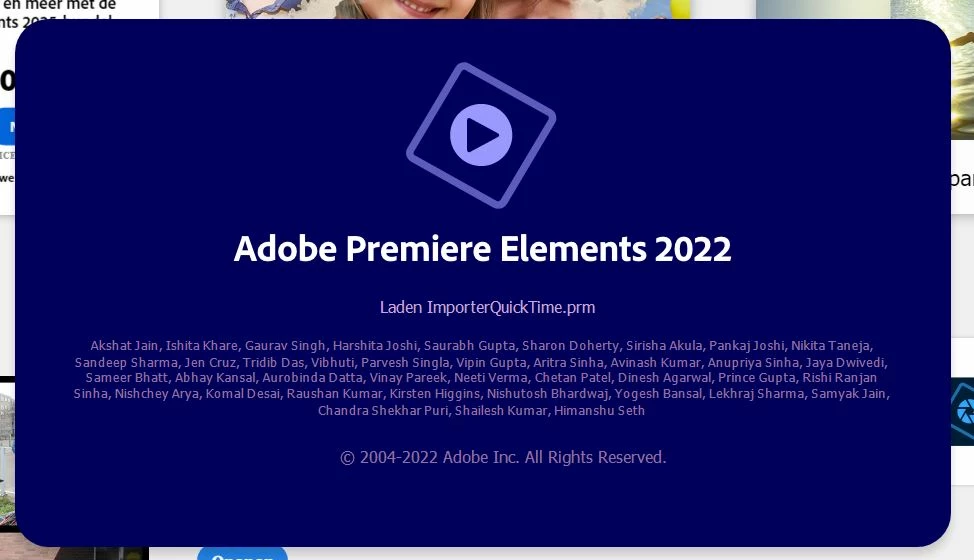 Adobe Premiere Elements 2022 hangs on 'Laden ImporterQuickTime.prm'.