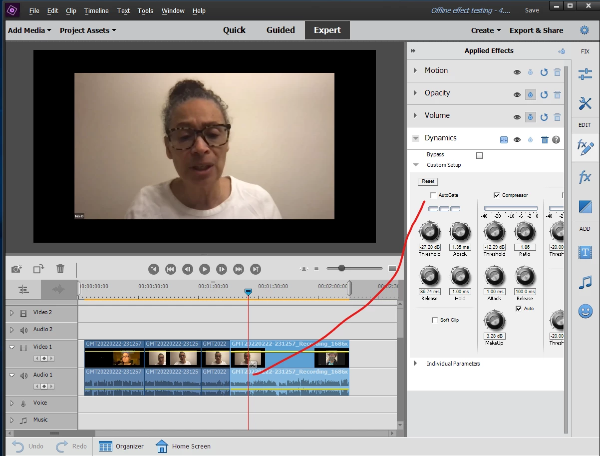 - This version was very early, after I had applied the compressor effect to the long clip, and before I began editing it.