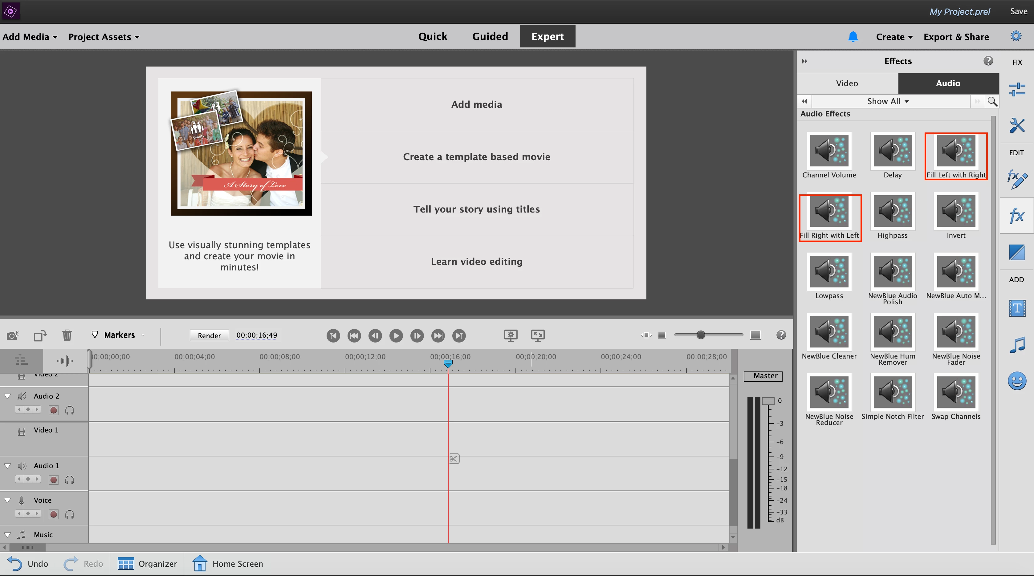 I can see in the timeline that the sound from one speaker is really low. The sound settings looks like when all sound is on
