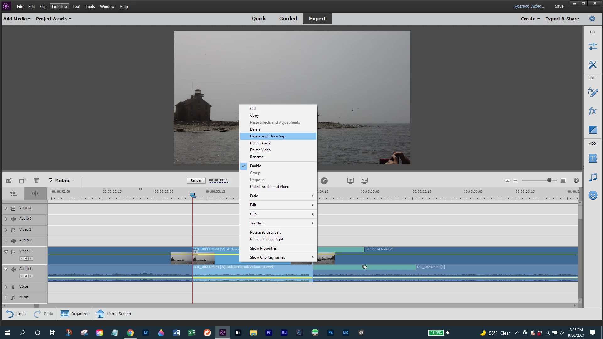 In the expert mode, if I create a clip in the middle of my timeline, then right click it, Delete and Close Gap is not an option, so I choose Delete. That leaves a gap which I then have to right click, at which time I can Delete and Close Gap.