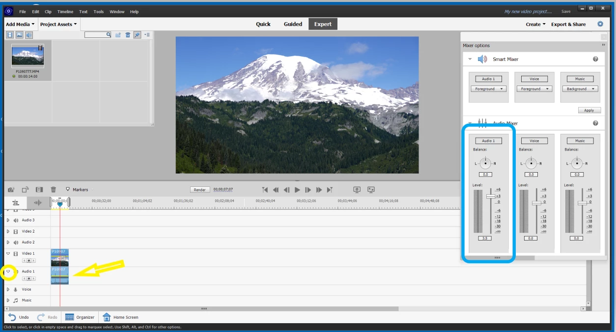 Can't adjust volume levels in Adobe Premiere Elements 2019
