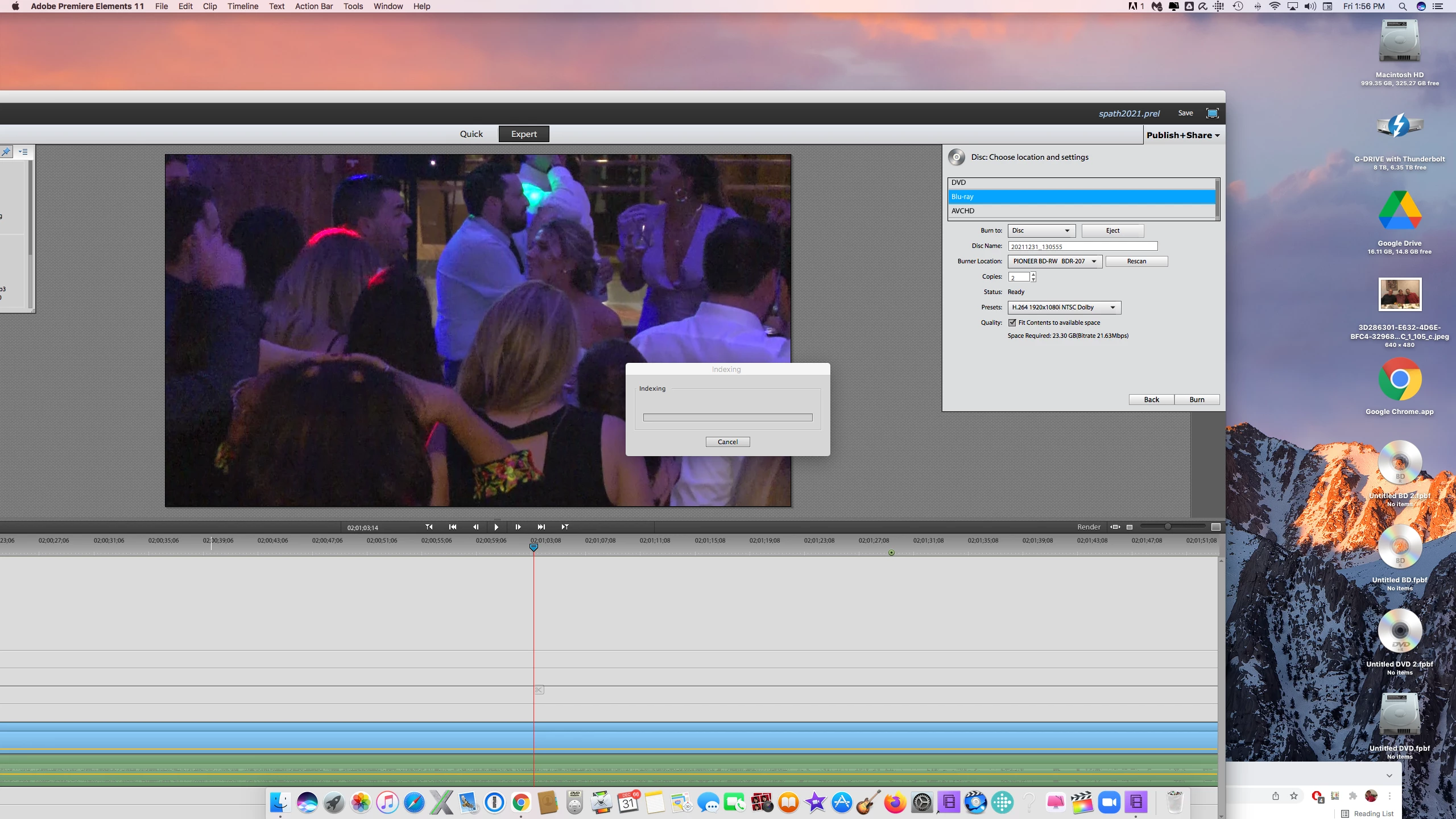 When I set up my movie to burn on Adobe Premier elements 11 it progresses to the indexing window but no indexing occurs and wont progress past that point. Screen shot included. This is an IMac.