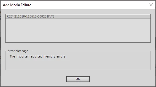 Can't import a 30MB .TS file: "Add Media Failure / The importer reported memory errors"