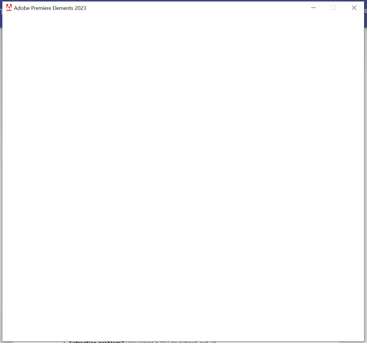 I just installed Premiere Elements 2023 (free version) on Windows to try it out before buying. It doesn't seem to work. When I open it, I get the main window that lets me click on "Organizer", "Photo Editor", or "Video Editor". When I click on "Video Editor", it opens a completely blank white window - no menu or anything. See the attached screen shot. This window is all I get, no matter how long I wait.