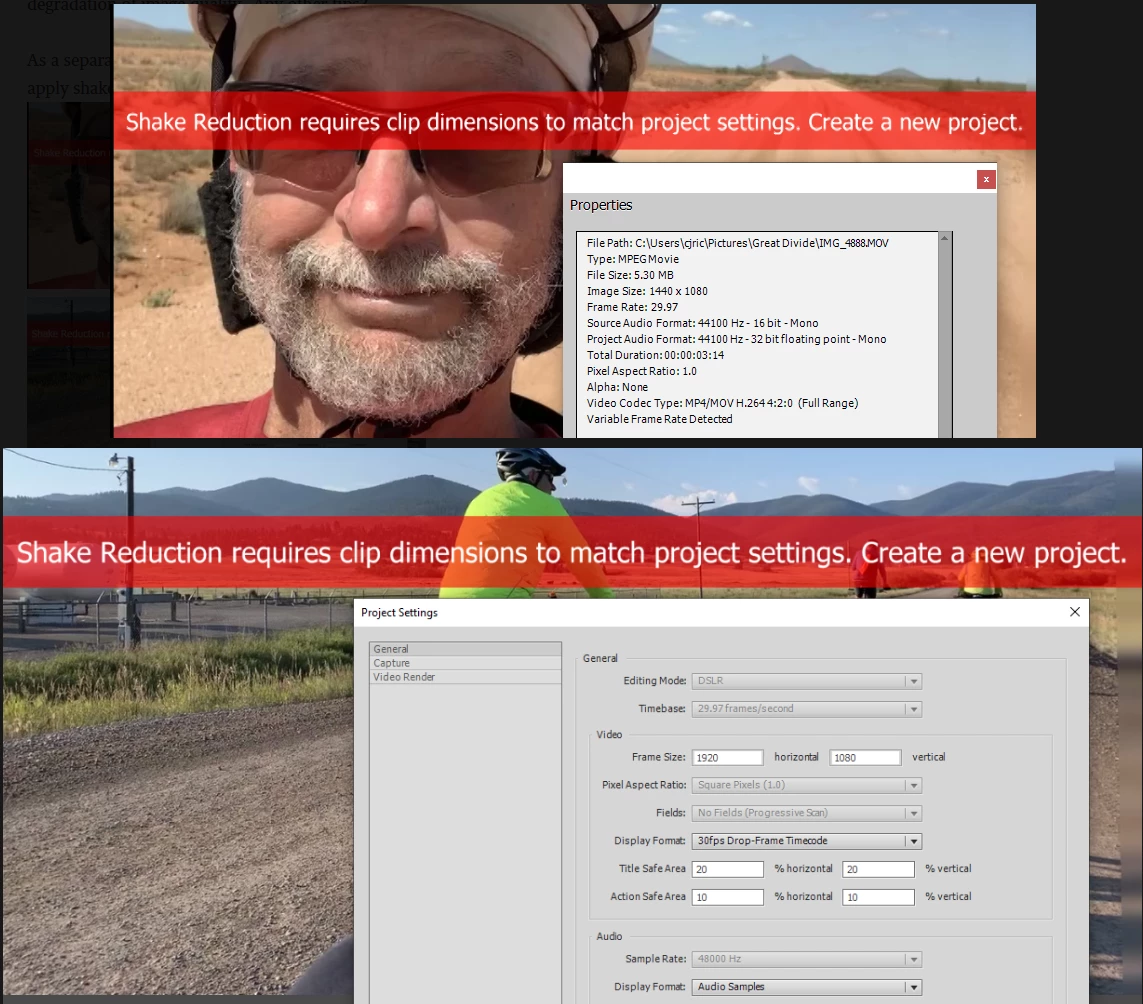I don't seem to be able to apply shake reduction at all. Is it because Elements doesn't seem to have an appropriate preset for this video format?