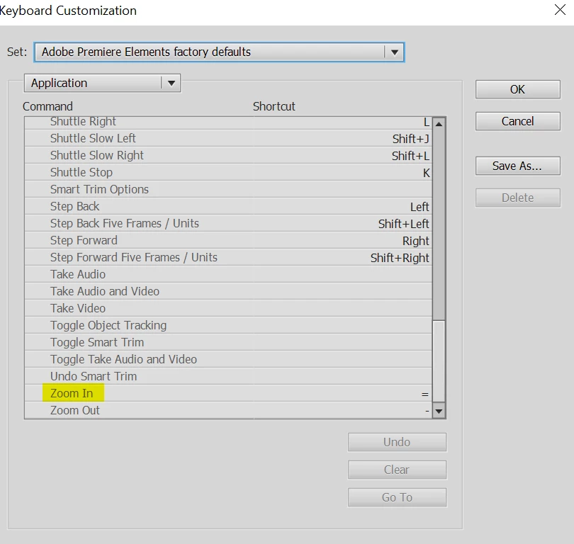 I can see how to change most keyboard shortcuts, but I cannot find the shortcut to change how I zoom in the timeline. I really want to change this from + and = to the system I am used to in other software which is shift+ctrl+ mouse scroll. How do I do that please? Is it possible to search for keyboard shortcuts that I want to change? Thanks very much.