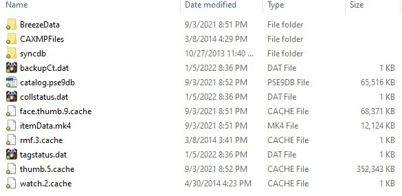 When I open my PSE2021 "Photoshop Premiere Elements Catalog" folder, I see that it contains the folders of images that I've imported. Following those, there is a folder called "Photoshop Elements Catalog" (dated 10/27/2013 -- I have no idea where that date came from):
