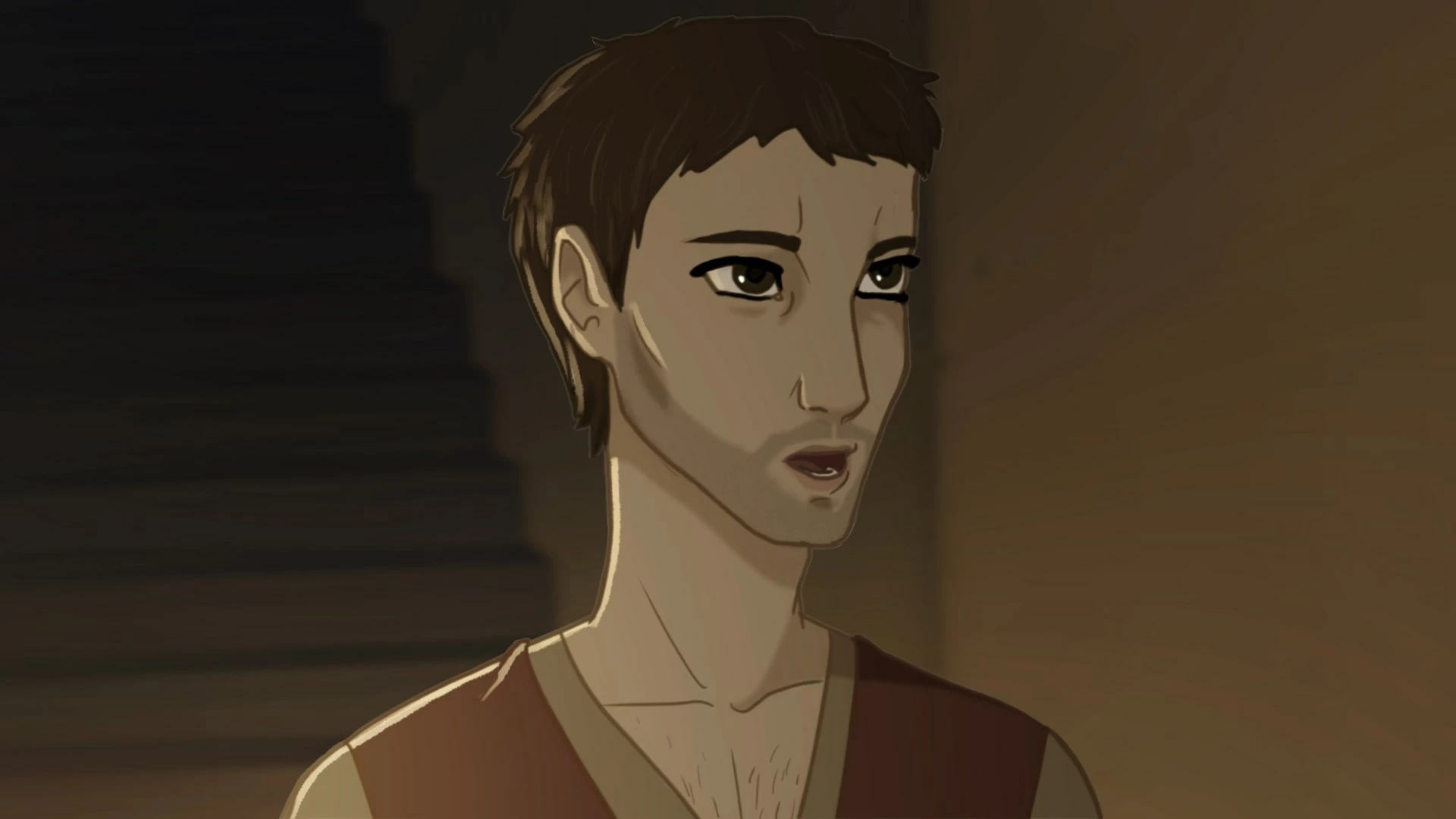 También pongo otro ejemplo de un segundo personaje recortado colocado sobre un fondo, todo él tiene un contorno grisáceo/blanquecino.