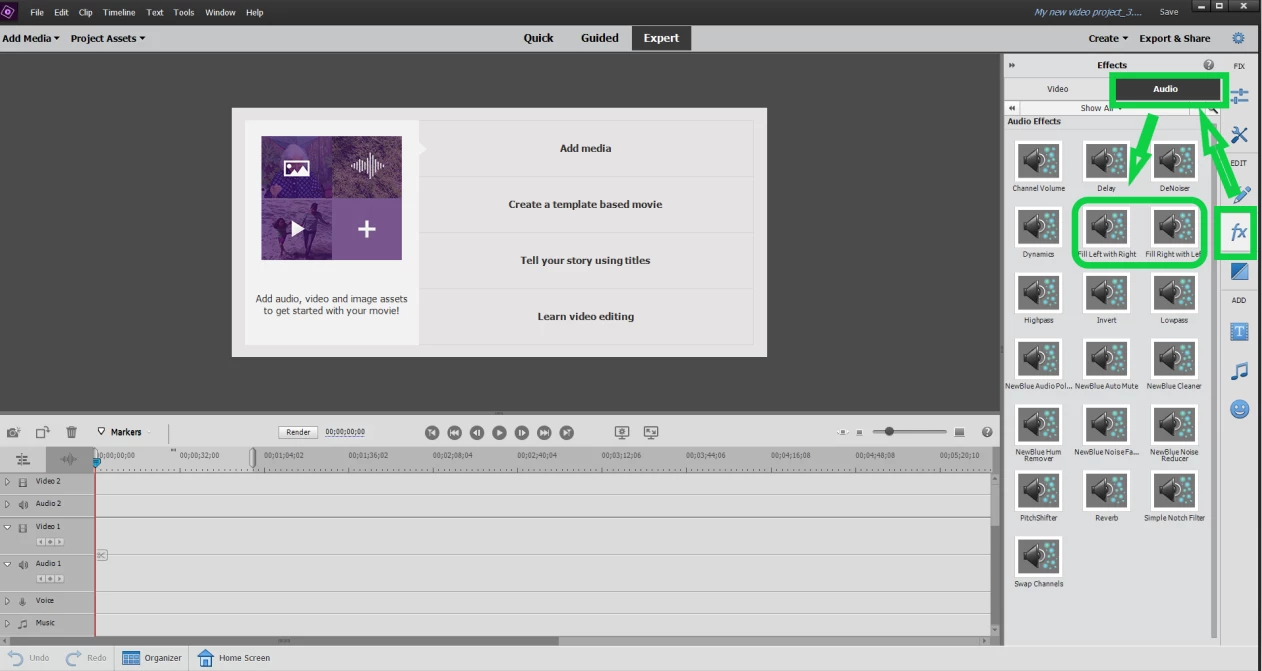 Converting audio from MONO to STEREO in Premiere Elements