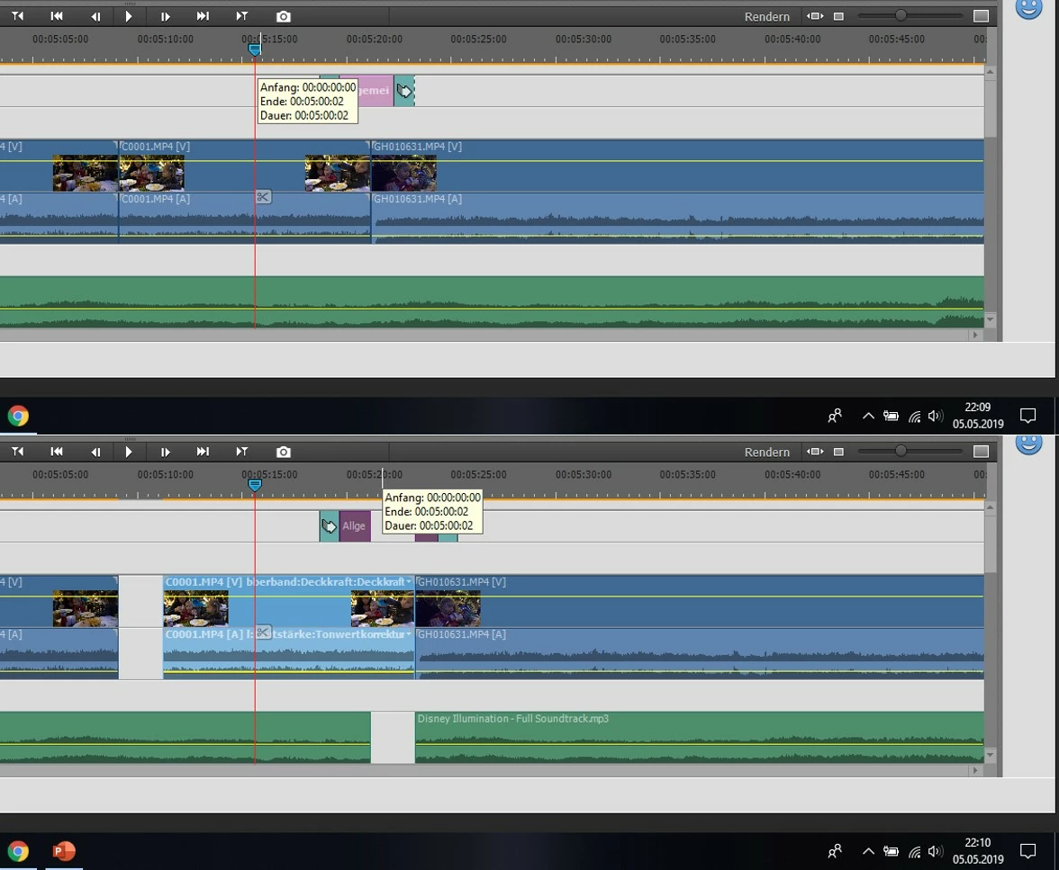 - If I'm moving a clip to the right to get some space in between, the program is cutting the elements in the music and Video 2 track