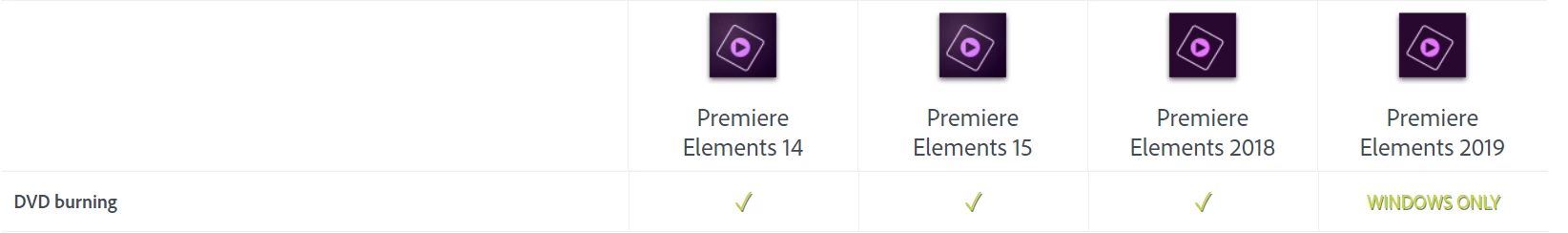 Version Comparison | Adobe Premiere Elements 2019 vs 2018, 15, 14