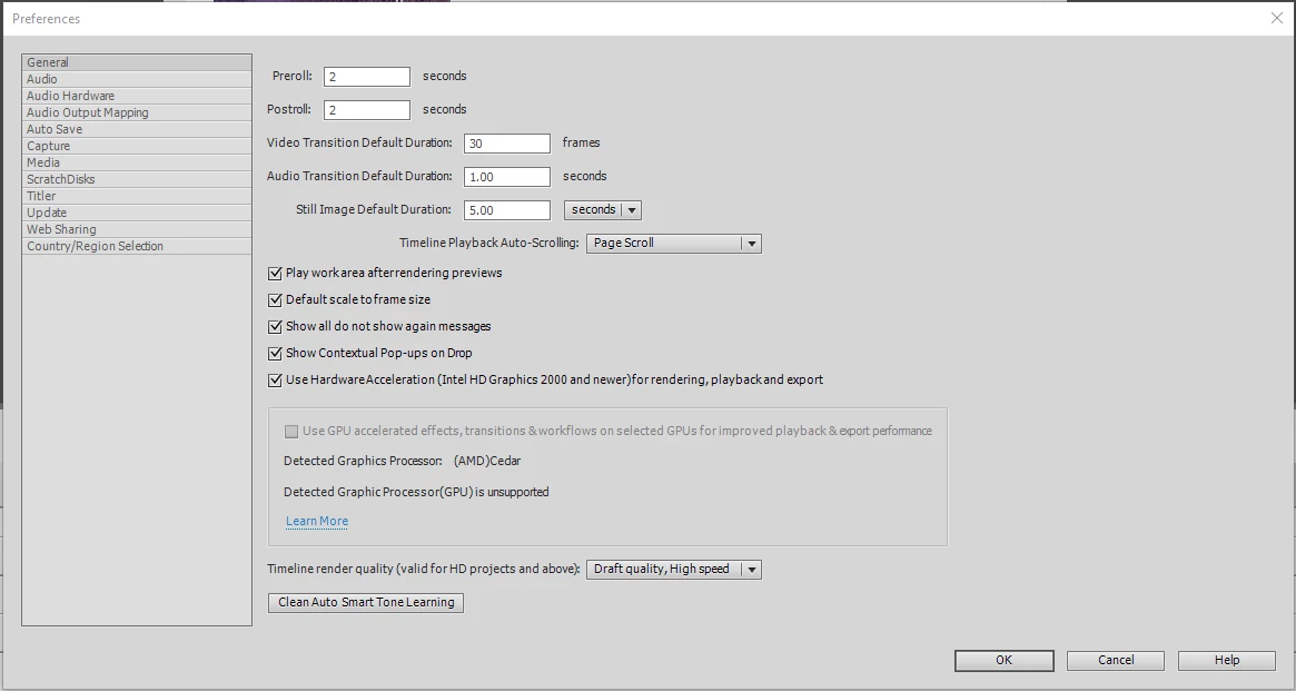 I tried changing to use GPU under 'Preferences -> General' but it says that 'Detected Graphic Processor(GPU) is unsupported'
