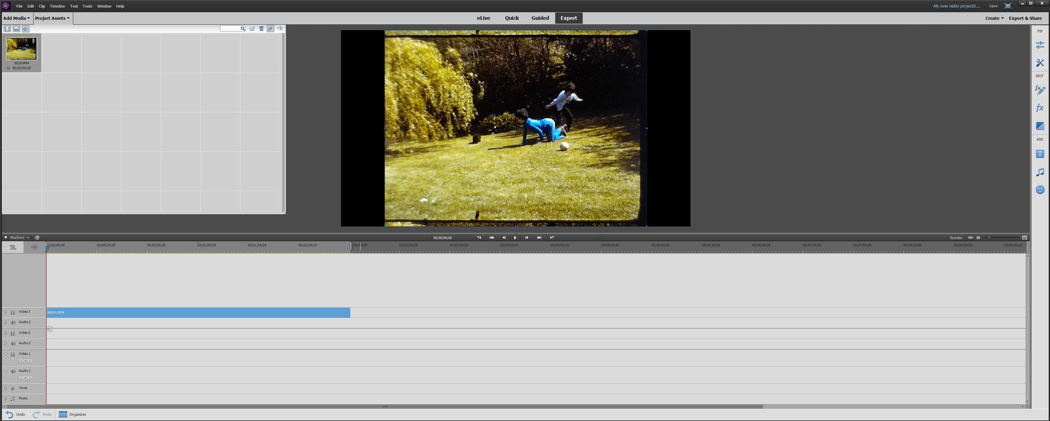 In Adobe Elements I found that when I create a new project to edit these videos I have to select "PAL->Hard Disk->Standard 48Khz". This is because this is the only project with a 4:3 aspect ratio. The preview window is the correct aspect ratio (4:3) and when I add my media it correctly fills the entire preview window (see the attached "standard" image).