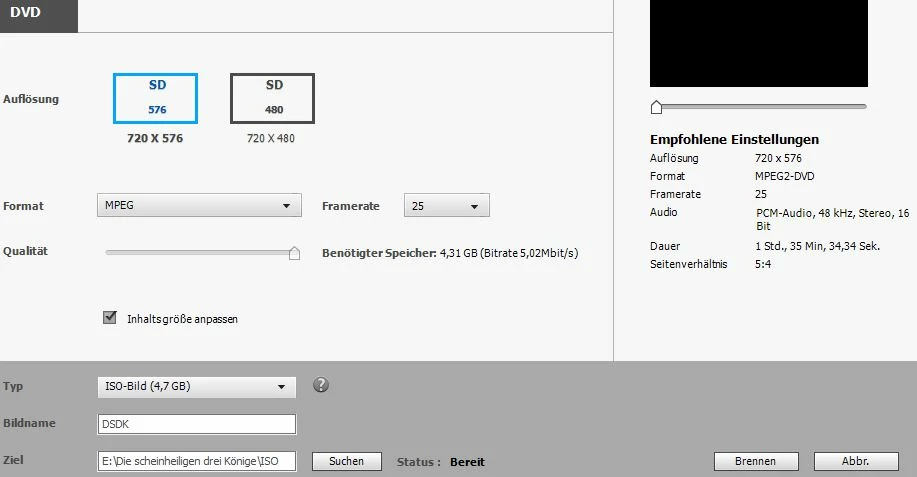 -Somit bleibt nur noch der Export in ein ISO-File (Das könnte ich problemlos brennen).