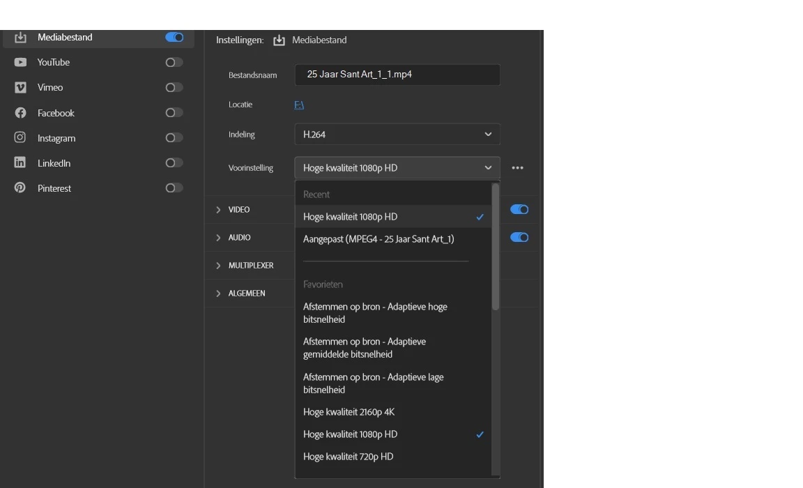 What settings do i best use to export a movie (montageen render in premiere elements 2026) to a USB or external HD to send this movie to a projector via a laptop?