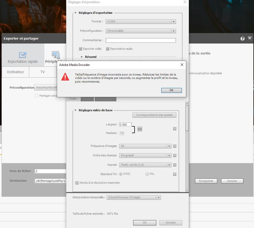Je n'arrive pas à exporter en 2560x1440. De plus, il n'existe pas dans la liste des profils personnalisés et des preset.