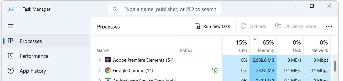 I’ve tried making a video of the double-speed playback but once Premiere freezes, I can’t record. And for some reason Task Manager no longer shows Premiere after I’ve exited so I can’t send a screenshot of the post-exit memory use, which is usually substantial.