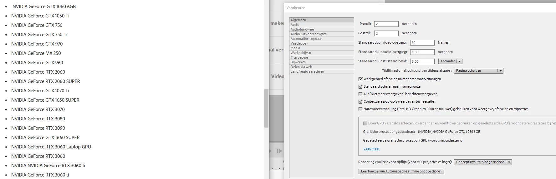 During exporting my project my PC crashes. Complete shutdown, display failure, you name it. Tried several things, like complete clean re-install, disabling half of my cores, hardware acceleration disabled, nothing works. But on the Adobe site I see that my graphics card should be supported. In the system it is recognized but it says that it is not supported (see below). Could this be the problem?