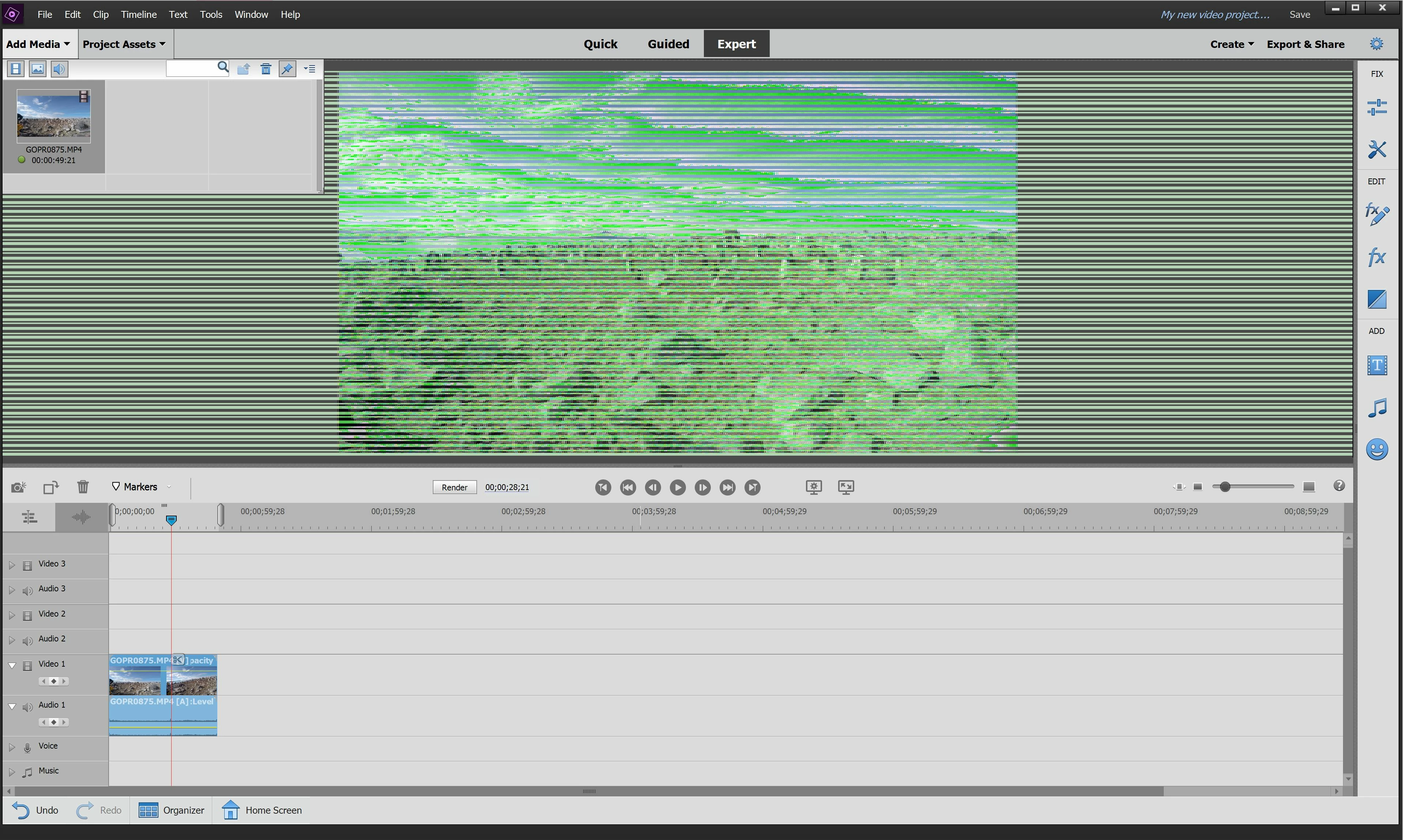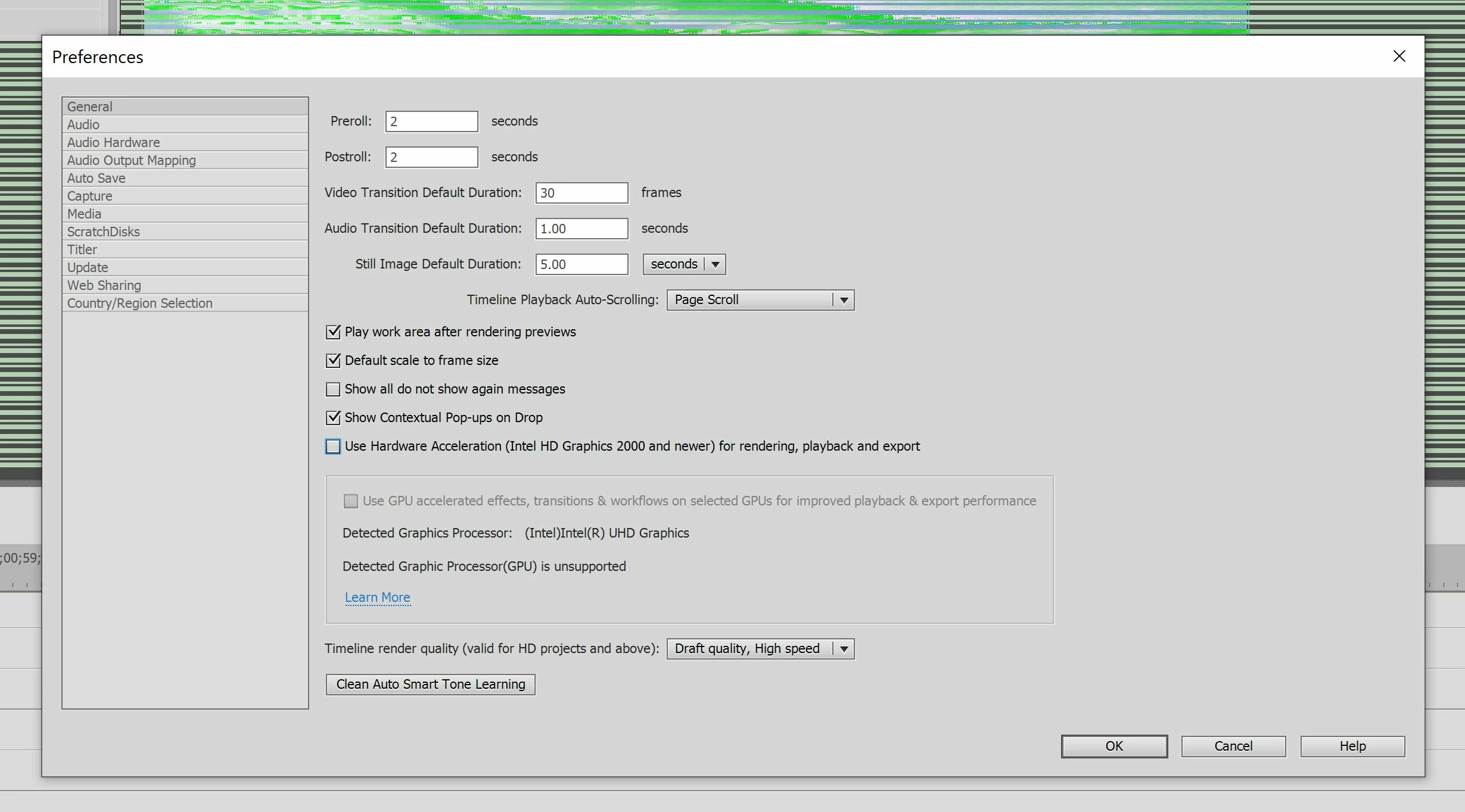 Unfortunately, in Premiere Elements 2021 playback screen I get green horizontal lines and the video is running behind them. Please look at the attached screenshot.