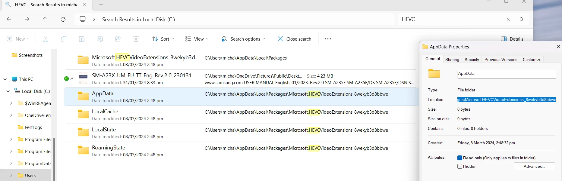 I am fully aware of the "HEVC x265 now WORKING in Adobe Premiere Elements 2020" and have d/l and installed the Windows HEVC Video Extensions but this has not made any difference. It took me some time to find the Extension files - they show in attachment 2 .