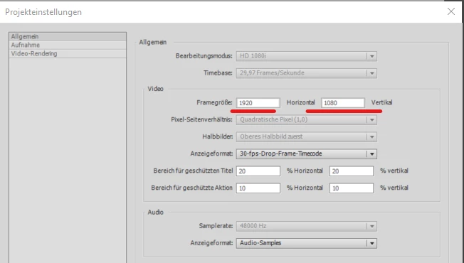 I tried to set the Settings to 6:19 and then importing the source material. Sadly I am not able to change the prefield settings, Screenshot: