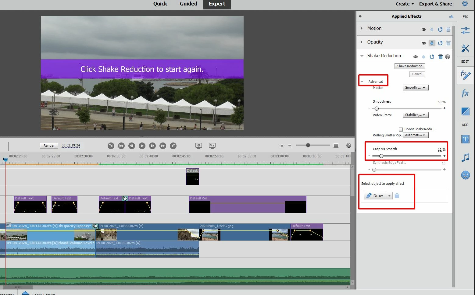 HOWTO: Shake Reduction Using Selected Object via "Draw"