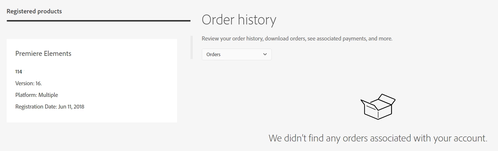 Years ago I bought on internet Adobre Premiere Elements 2018. Now I want to download it, but I can't see it in order history, however it's registered on my account. How can I download it?