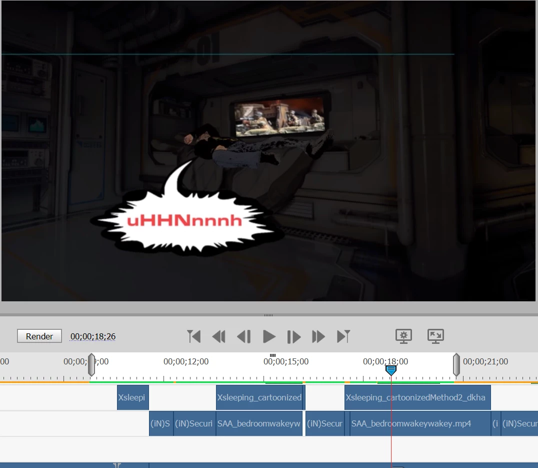 ** Backdrop image (1920x1080, unmoved, unscaled, no keyframes) behind/under robot image (unscaled but keyframe animated in pos and rot) behind/under a default text -> backdrop image scales up vertically (only visually, not in scale settings, but also in renders, and in saved .mp4) to just slightly taller than native, making it slightly fuzzy. This only became apparently after the first time I played/rendered/exported.