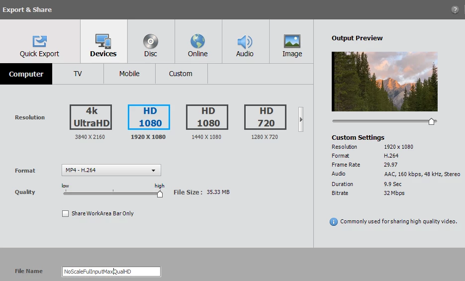 What preset should I be using? (Final output could be directly to an HD display or to Vimeo.)