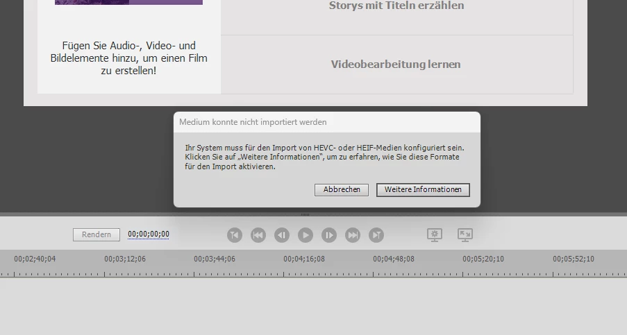 LLaurin.rsswParticipantForum|Forum|2 years agoMay 1, 2023QuestionInsert video doesn´t workForum|Forum|2 years agoMay 1, 20231 reply519 viewsI filmed a few videos with my Google Pixel 7 and wanted to edit them in premiere elements 2021, but I keep getting the same error message: HEVC and HEIF media cannot be added, the tips from the linked page didn´t yield any succes.What can I do?ThanksImport