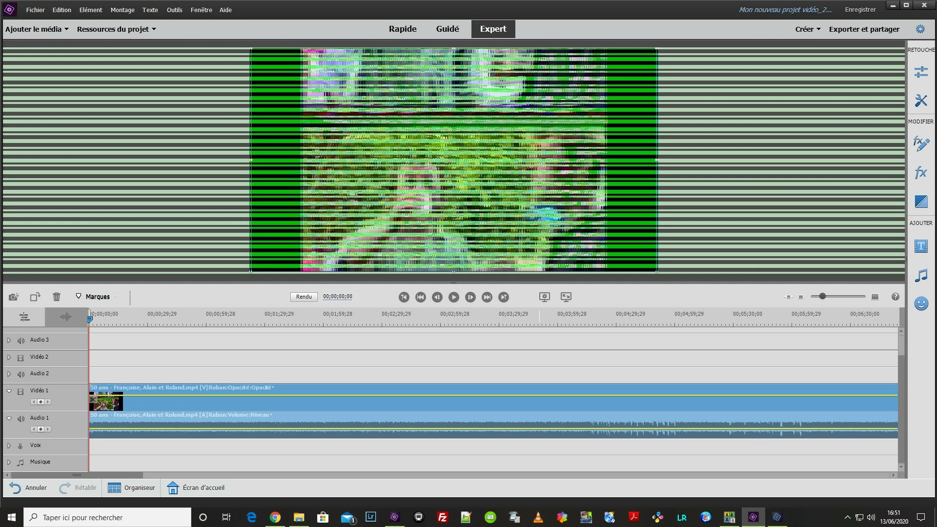 Des lignes horizontales apparaissent quand je charge une vidéo sur l'espace de travail. Ce phénomène est apparu depuis la dernière mise à jour Windows 10 de juin 2020. Seul l'aperçu est concerné, les lignes n'apparaissent pas sur le travail final après exportation.