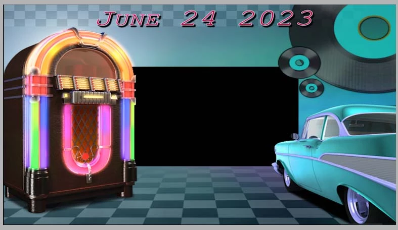 I put this in a video clip now I want to edit it. I can't seem to edit it becausae all I can select is the main image instead of the text I installed in there. So I was going to install a new one but now I cannot find where I got it from. It is an image of a 57 Chevy and a juke box.
