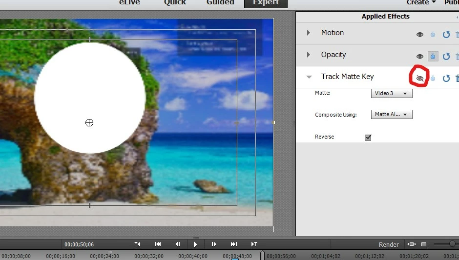 Hello. I'm using Premiere elements 13. I have pictures or videos as the background, say that's on Track 2. I insert a circle shape; that's on Track 3. There could be a picture or video on Track 1. I apply the Track matte key effect to the clips on Track 2 respect to the shape on Track 3 so the clips that are behind (Track 1) are seen circle shaped. But if I resize any of the clips I apply the effect to, the size and position of the shape changes as well. I want it to stay as is regardless of what I do with the clips.