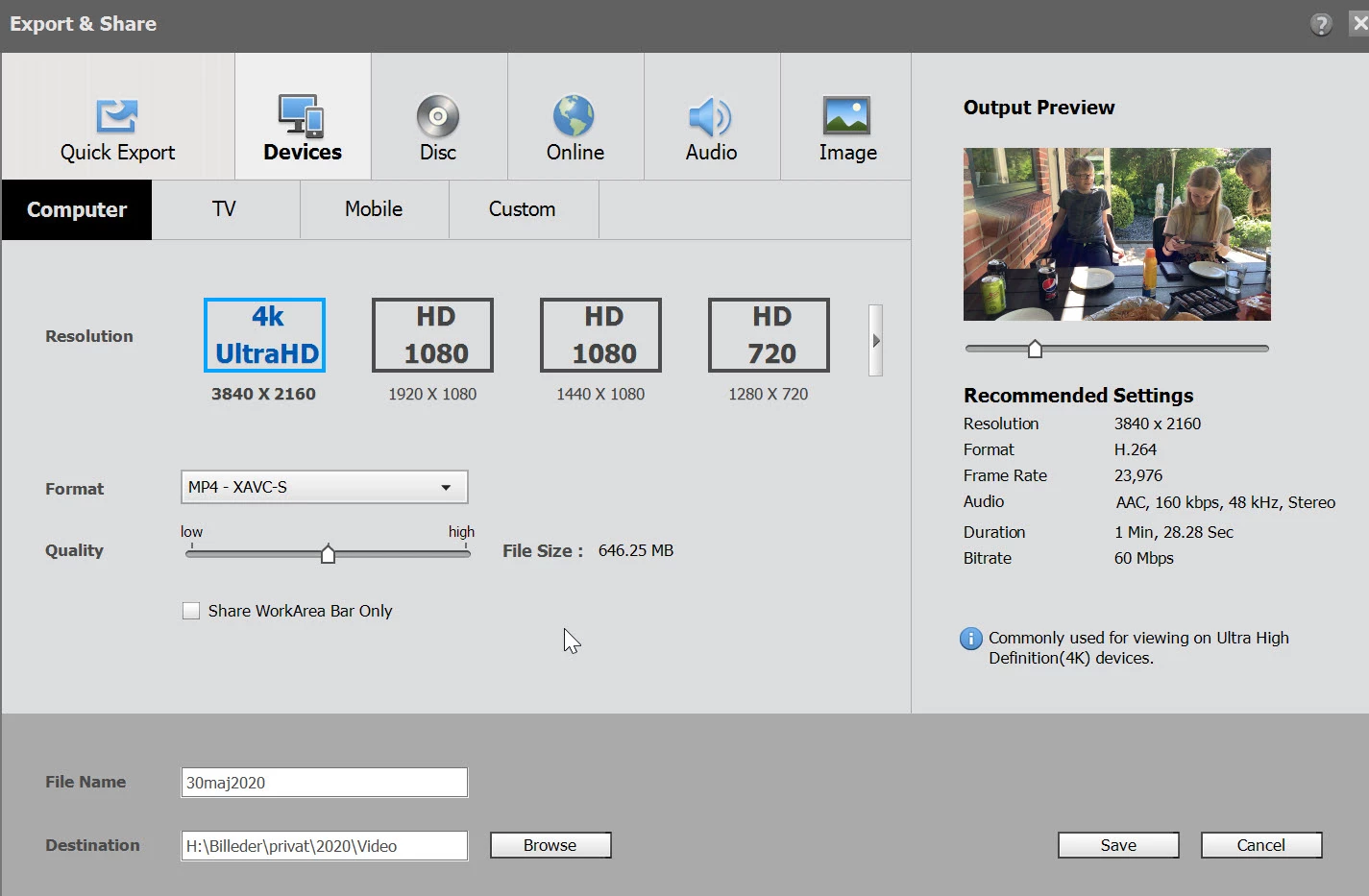Eg. I saved a simple task - it went fine, then I also wanted to save a 4K version - there was no sound on.