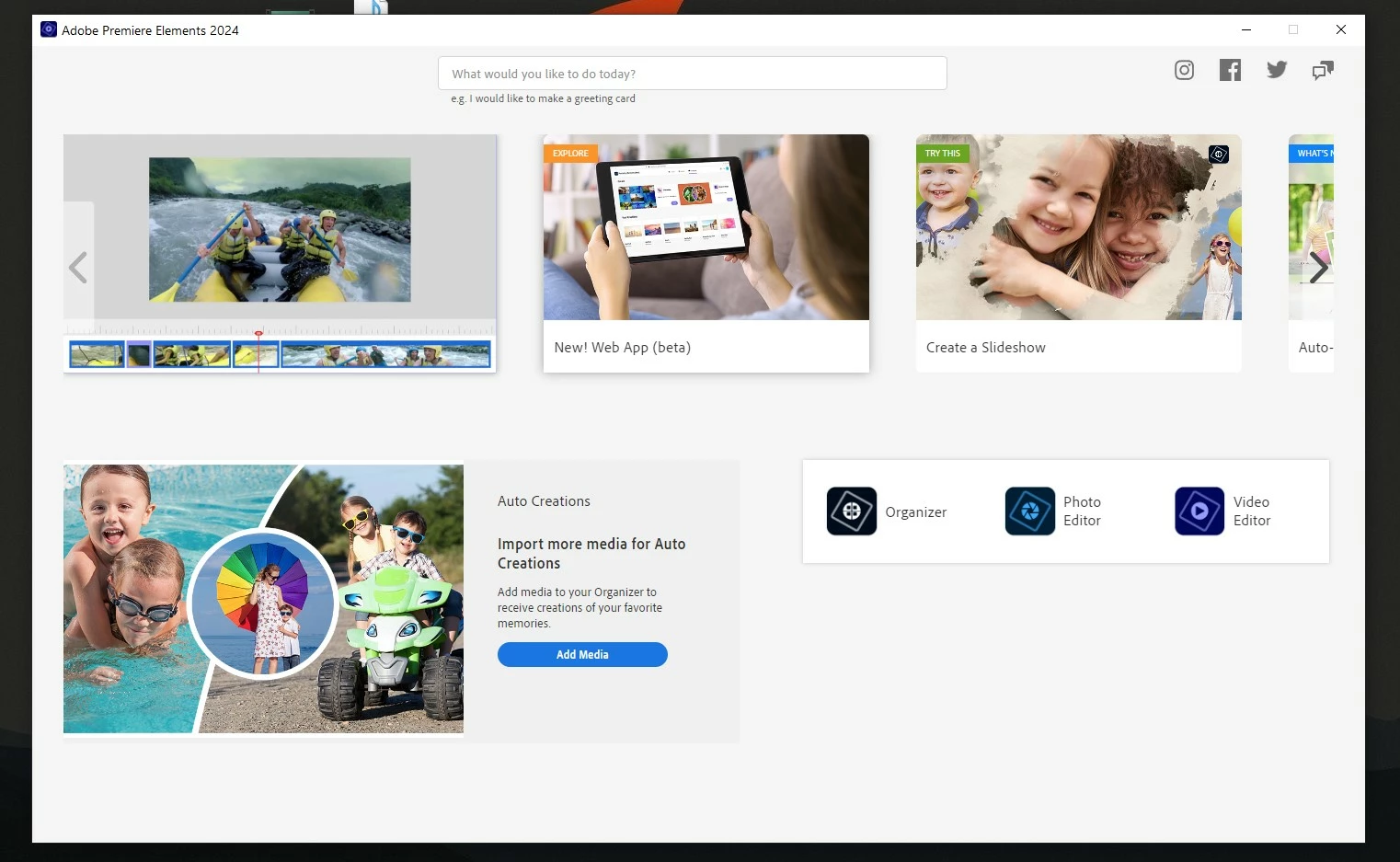 I was using Premiere Rush for my basic video editing needs, but I didn't like that all the features weren't unlocked. I don't do enought to justify renting it, so I saw the Elements is standalone software that's similar, and has even more features. Decided to get it, but I'm wondering about a couple things. First, when I launch it, it defaults to the window with all kinds of options (see attached screenshot). Is there a way to make it launch right into the video editor and skip this initial window?