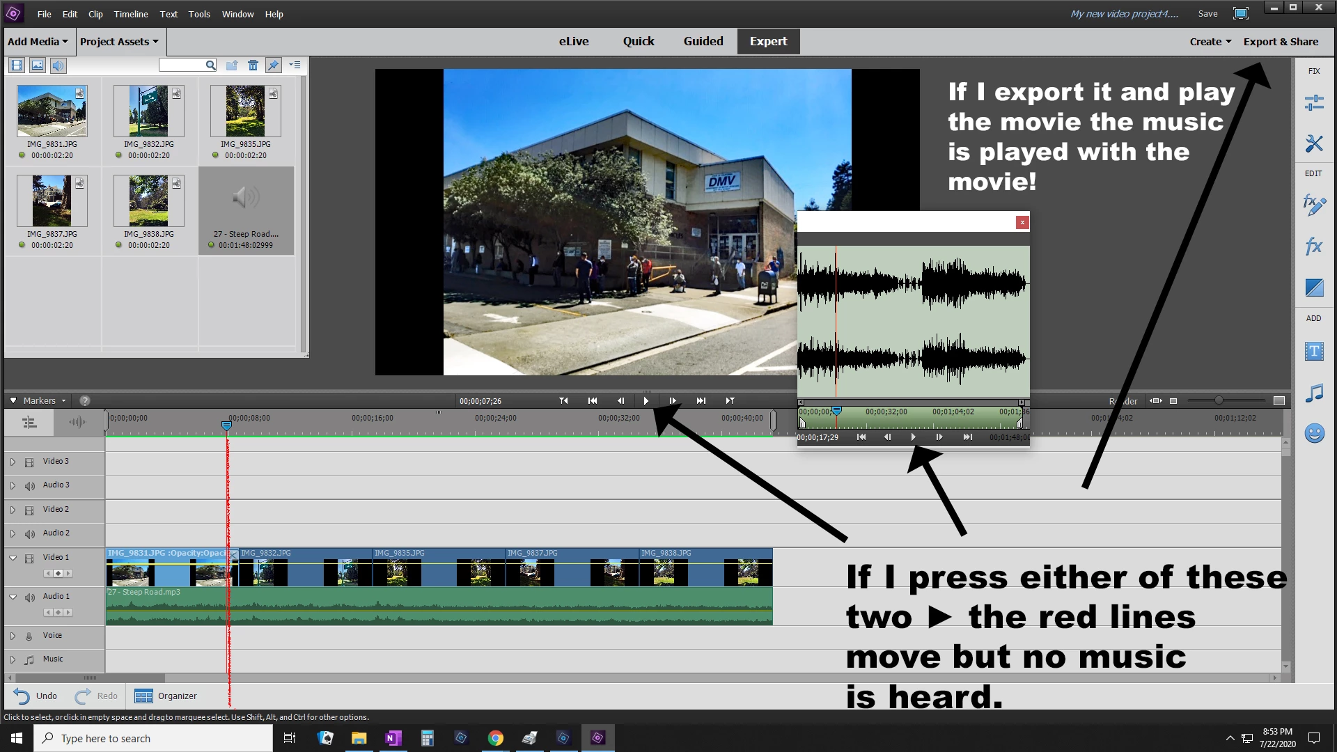 PE 15: MS updated my computer last night. I load a song mp3 and a recorded video into a movie I am