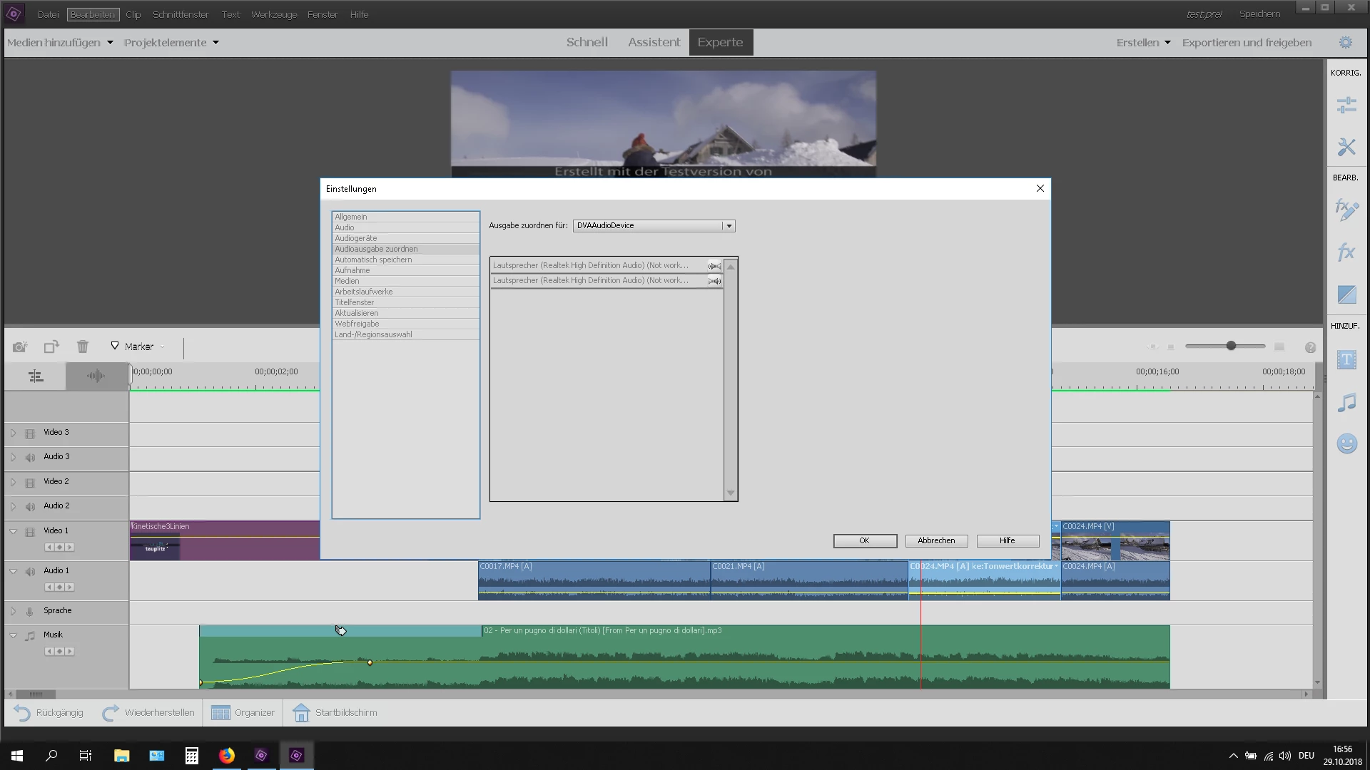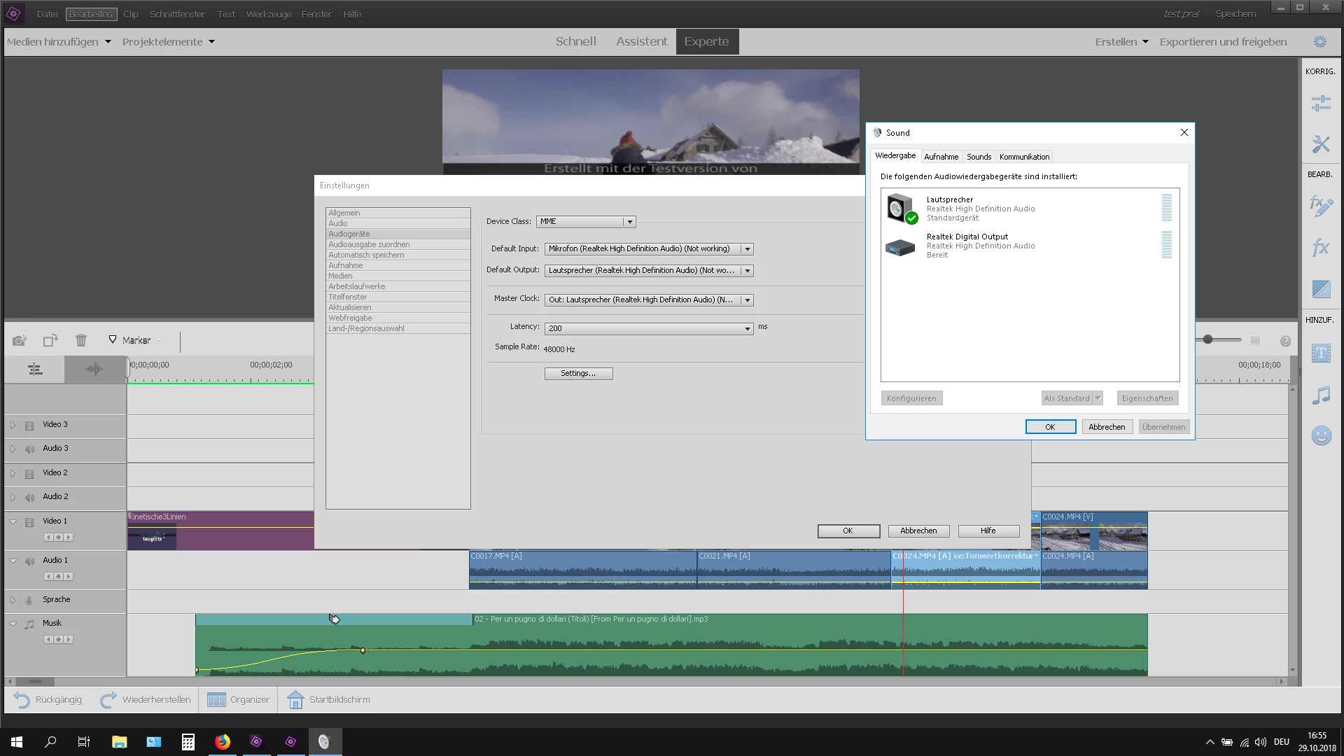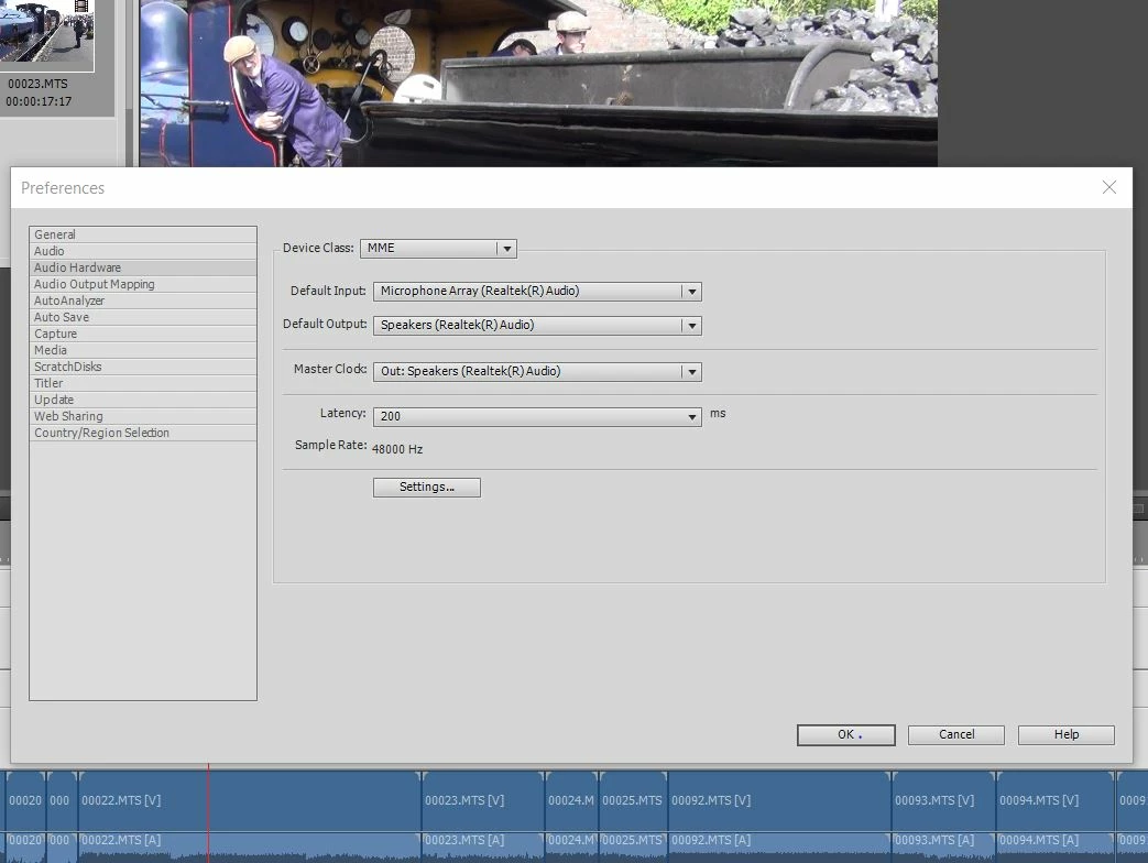 Just installed Premiere Elements 19. No sound from timeline or elsewhere. However, perfect sound if I play my clips on any other player. The speakers are set to default ourput - so everything is OK. However, the audioconfiguration in the project settings tells me "device class MME" and "Realtec High Definition" not working.